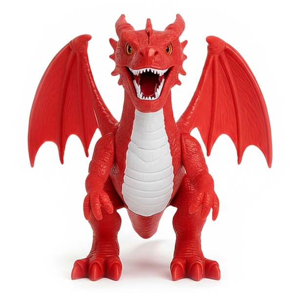 - Activación simple mediante botones ubicados en la cabeza y el dorso del dragón