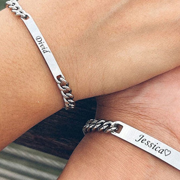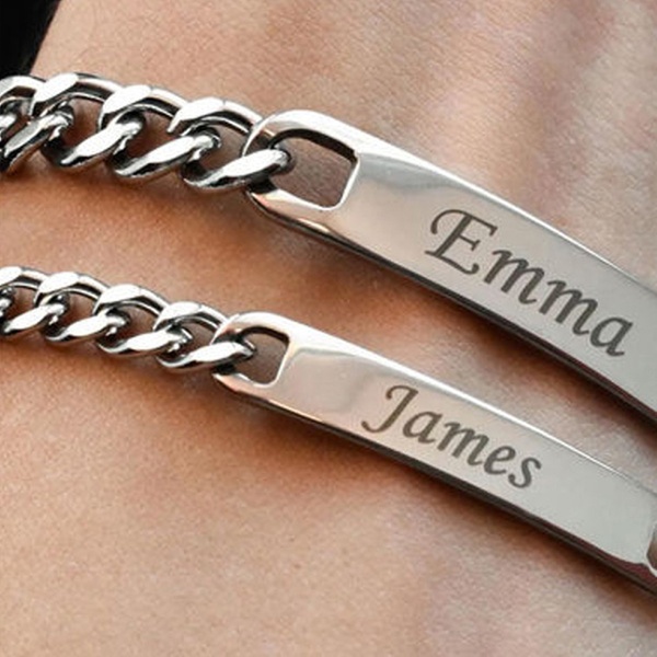 • Elige entre 1 o 2 pulseras de acero inoxidable y personalízalas a tu gusto grabando nombres o fechas significativas.
