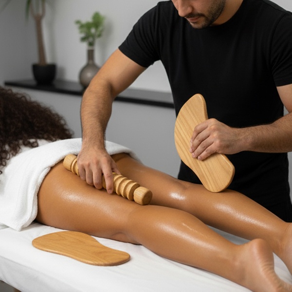 - Maderoterapia: se complementa la acción manual con instrumentos de madera adaptados, que estimulan la microcirculación y ayudan a eliminar los nódulos de grasa de forma más efectiva.