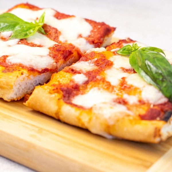 - Pizza Margherita: con salsa de tomate, queso mozzarella fresco y albahaca.