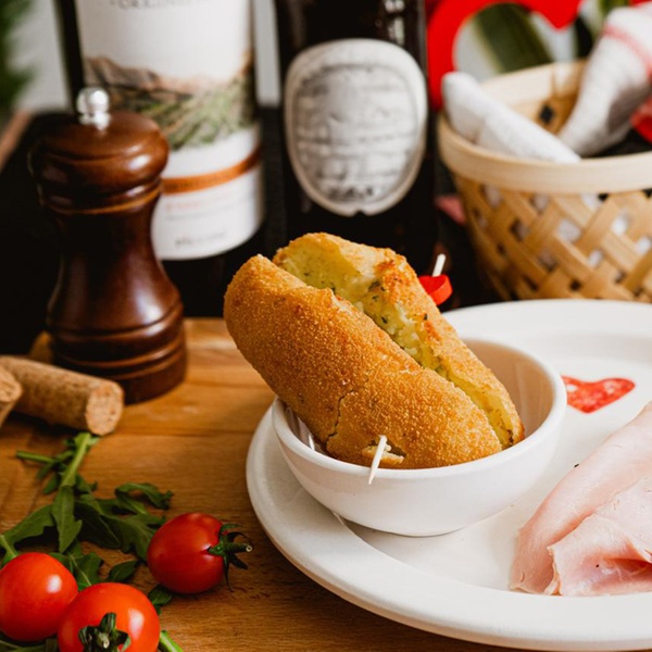 - Funghi: croqueta de arroz rellena de salsa bechamel, champiñones frescos y queso provola.