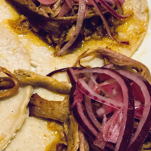 Pastor/Mestiza: queso de Oaxaca con pastor y tortilla de maíz