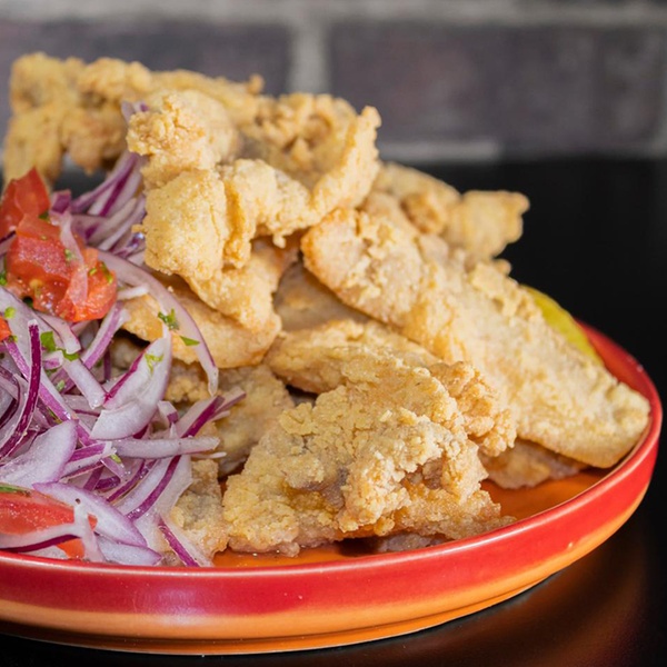 - Pescado frito: pescado empanizado cocido en fritura profunda servido con yuca, porción de arroz y su infaltable sarsa criolla
