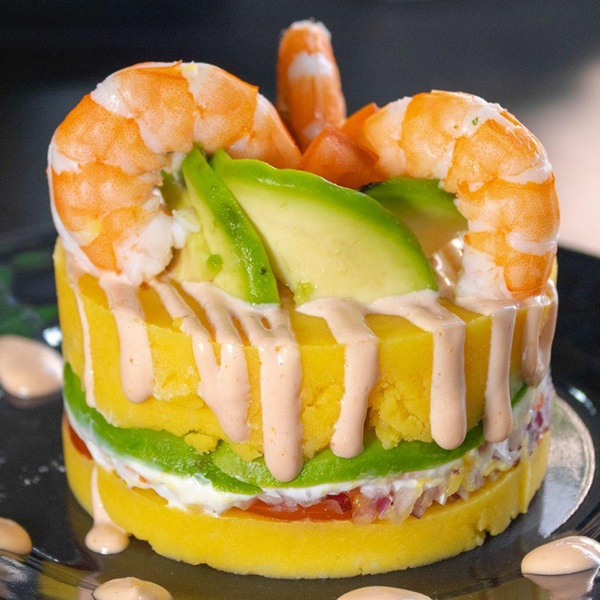 - Causa limeña rellena: la causa se viste de gala clásica con relleno de pollo