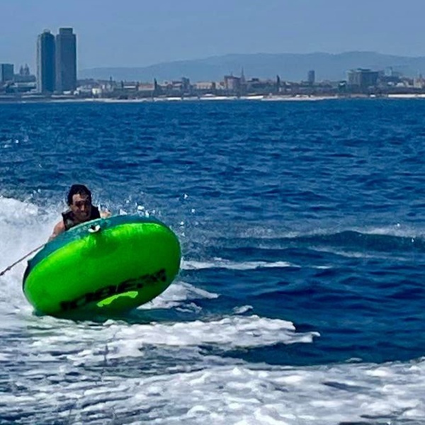 ¡Adrenalina y risas en el mar! Con un paseo en barco y flotador de arrastre, ¡súbete a la diversión más loca de Barcelona!