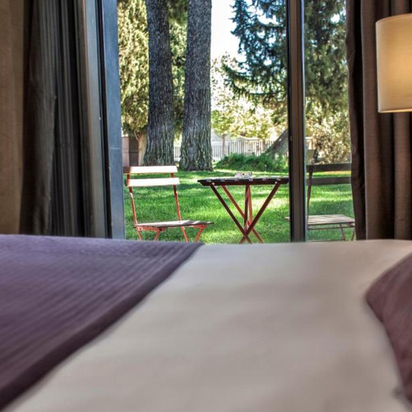 El entorno cuenta con amplios jardines, patios interiores y piscina, mientras que el nuevo edificio aporta una construcción vanguardista de formas cúbicas, creando un contraste entre tradición y modernidad. Todo esto convierte a La Salve en un lugar único para quienes buscan un plan exclusivo, donde cada detalle arquitectónico y cada espacio histórico forman parte de la experiencia sin necesidad de alterar el circuito termal.
