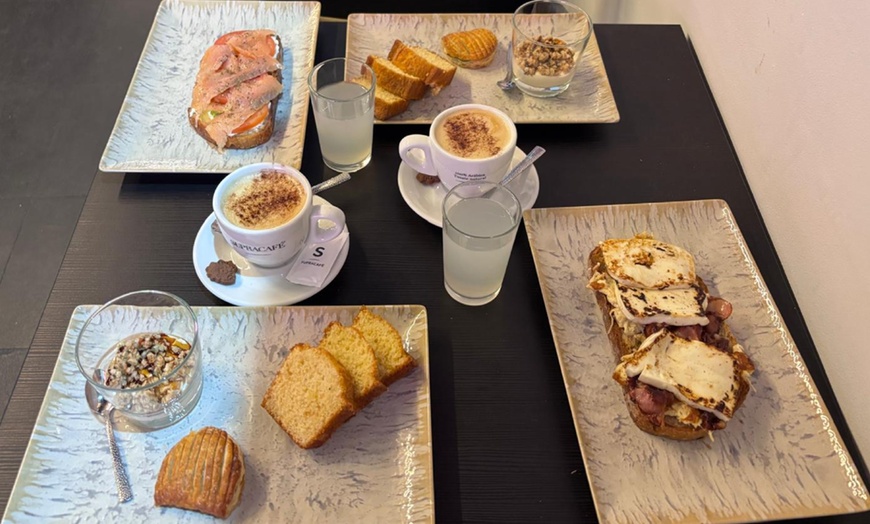 Menú de brunch para 2 o 4 personas con 1 bebida fría, 1 bebida caliente, 1 tosta o tapa y 1 postre por persona