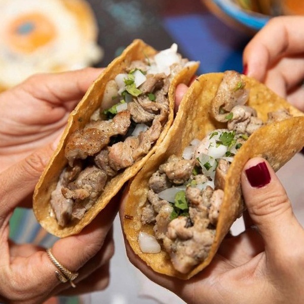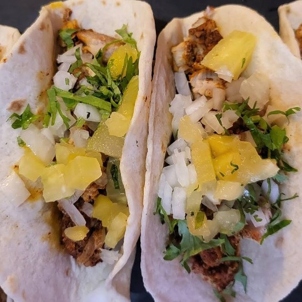 - Pastor: magro de cerdo adobado con su toque de piña, acompañado de cebolla y cilantro
