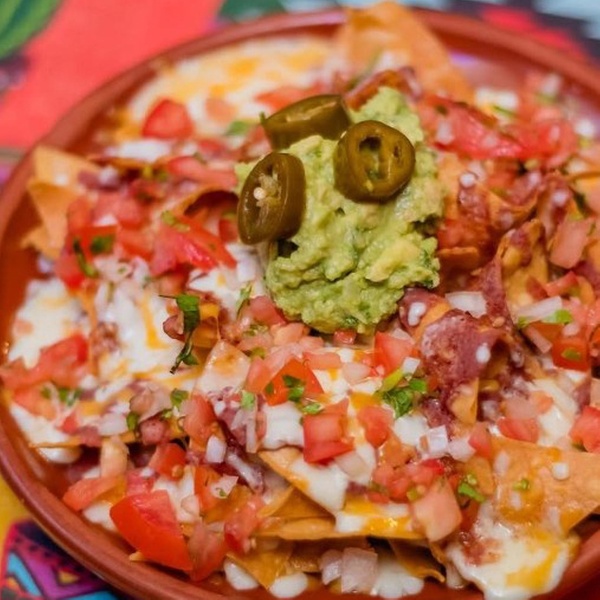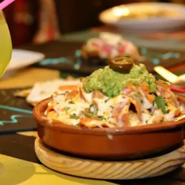 - Mini nachos con guacamole (a compartir): totopos de maíz frito con crema de frijoles, queso gratinado y pico de gallo, con jalapeños (opcional)