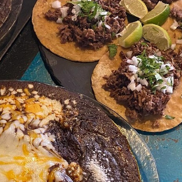 - Barbacoa: costilla y cuello de ternera preparada con chile guajillo y hierbas de olor estilo la abuela, acompañado con cebolla y cilantro