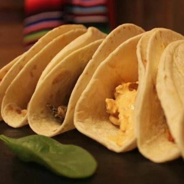 - Quesadillas (1 unidad): tortilla de maíz rellena de jalapeño o tortilla de maíz rellena de champiñones con queso