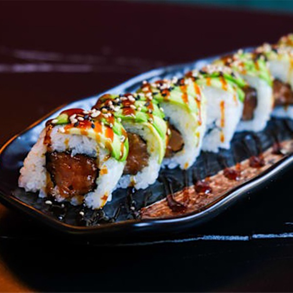 • Tataki spicy tuna roll: Relleno de atún flambeado, mayonesa Japonesa, sésamo flameado con salsa picante
