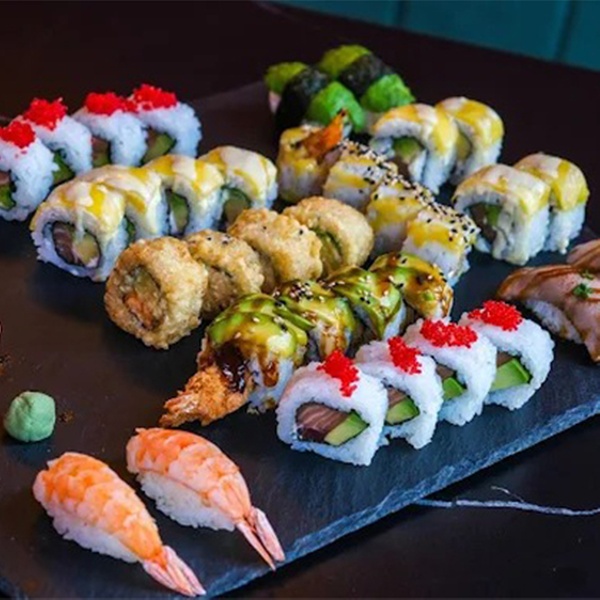 La oferta presenta dos opciones ideales para compartir: un menú para 2 personas y otro para 4 personas. Ambas opciones incluyen entrantes variados, un plato principal con 20 piezas de sushi por cada dos comensales y una bebida por persona a elegir.