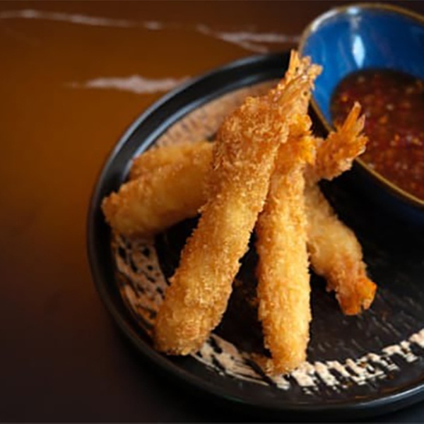 • Prawn crush: Relleno de Gamba rebozado, queso por fuera, aguacate con salsa Teryaki y sésamo