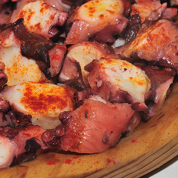 Pulpo a la gallega, huevos rotos con jamón ibérico, callos a la madrileña, pimientos del Padrón… en restaurante de cocina tradicional
