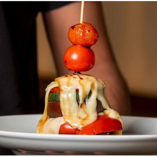 - Melanzane alla parmigiana al tonno y escama de almendra
