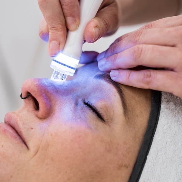 Limpieza facial completa con fototerapia facial: Disfruta de una doble limpieza, exfoliación enzimática, extracción manual, mascarilla calmante con fototerapia, masaje y activo personalizado.
