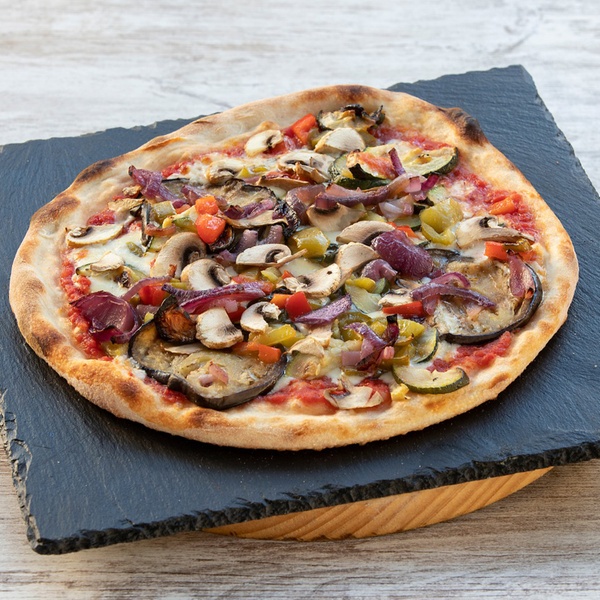 Vegetariana: salsa de tomate, mozzarella y verduras variadas de estación