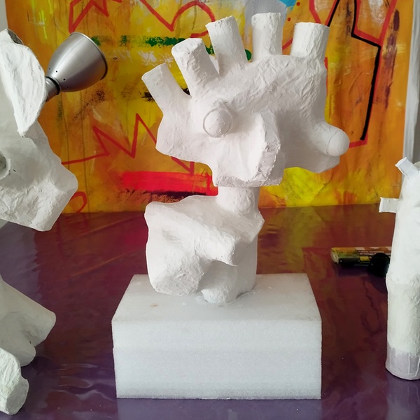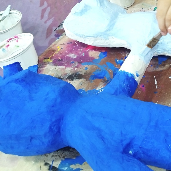 Un taller de escultura en papel maché en cuatro clases de 1.30 h cada una, trabajando con materiales reciclados.