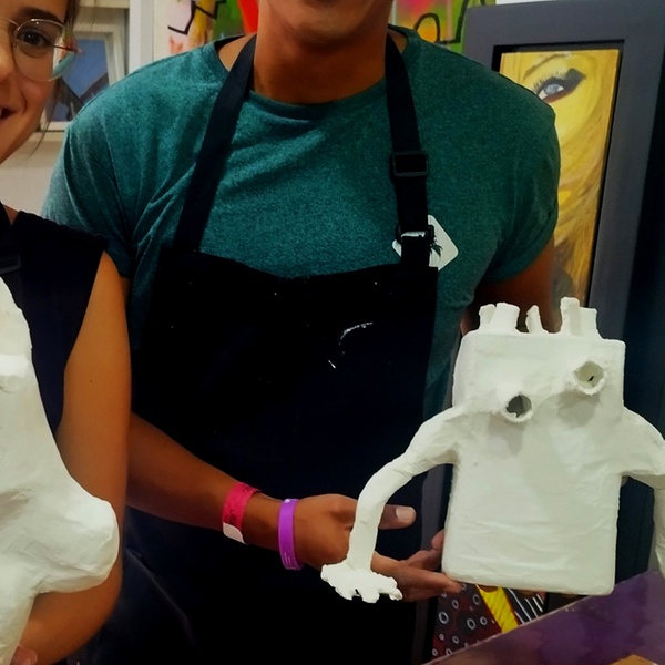 Cada sesión incluye técnicas de papel maché y la creación de piezas de arte personal a partir de materiales reciclados.