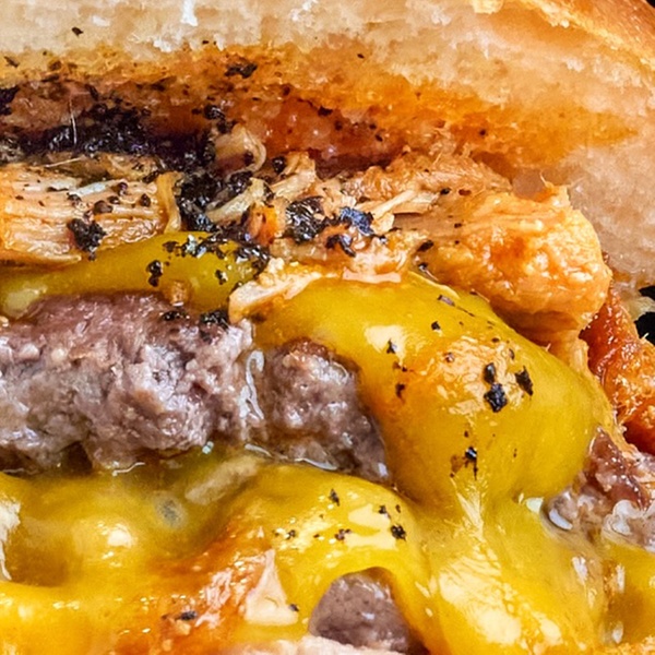 - Burger Honey Provolone: doble de carne (90 g. cada una), pulled pork, honey mustard, queso provolone y cebolla crunchy.