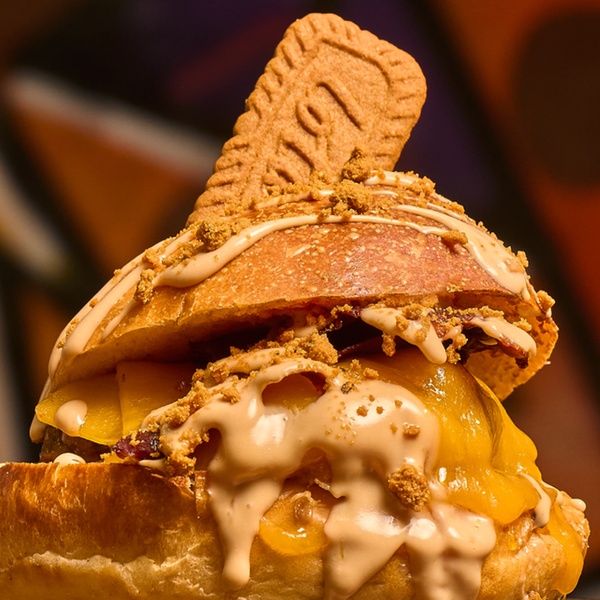 - Burger Lotus: doble de carne (90 g. cada una), queso cheddar, bacon, crema Lotus y crujientes de galleta Lotus.