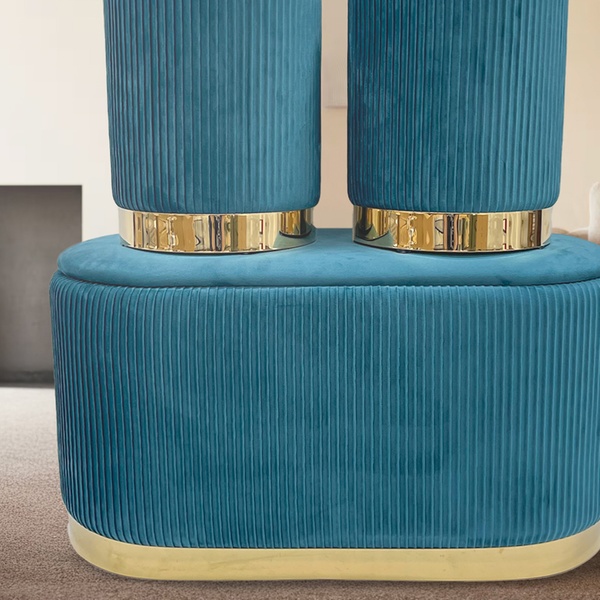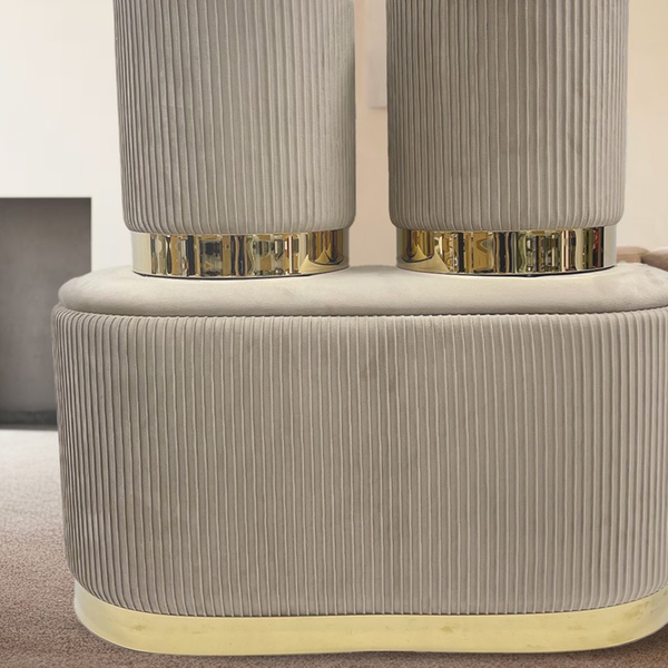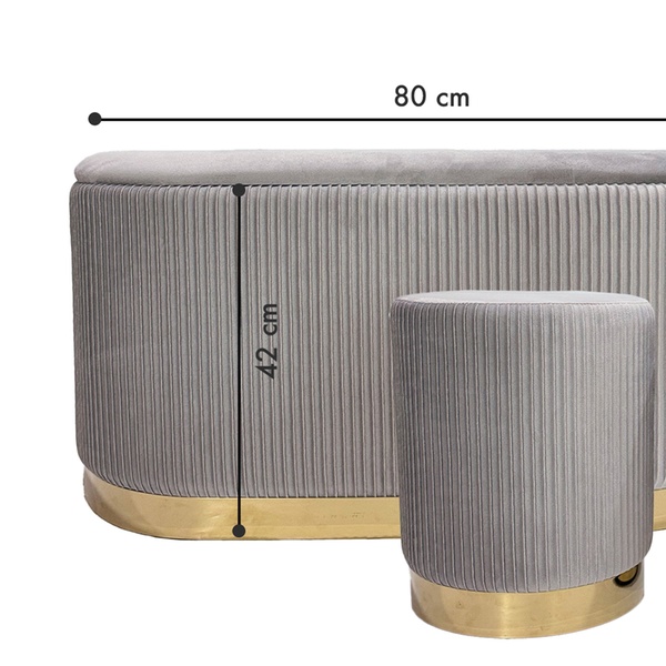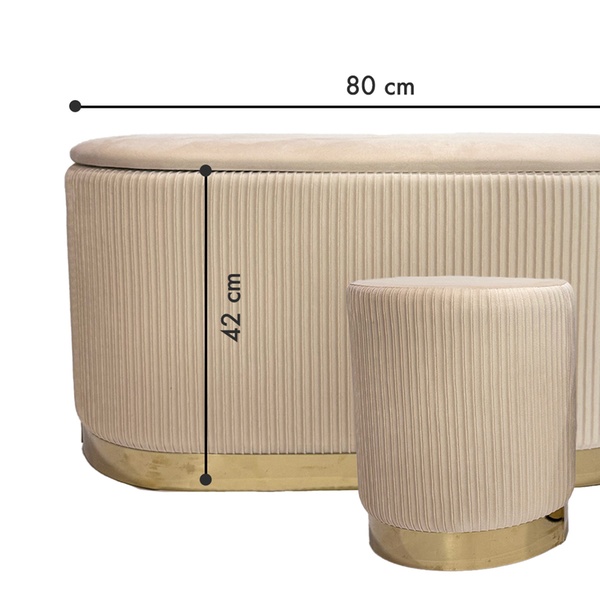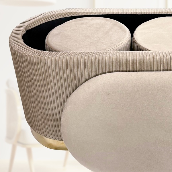Transforma el estilo de tu hogar con este juego de pufs con tapizado suave y detalles en dorado: ¡practicidad y elegancia en cualquier rincón!