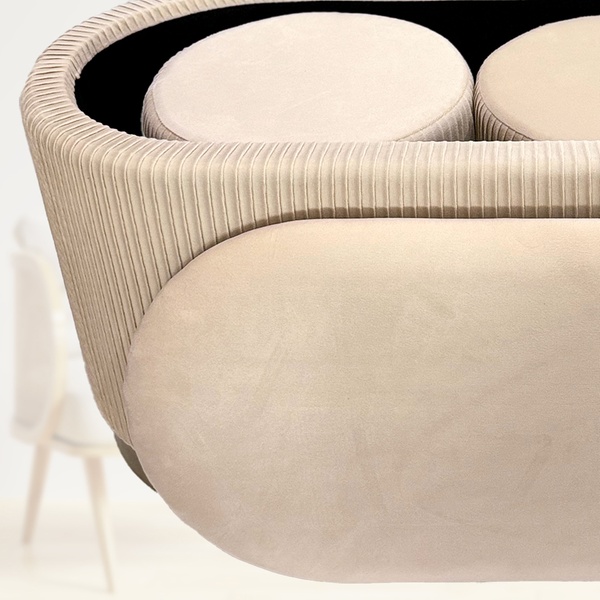 Groupon ofrece este lote de 3 pufs con tapizado de terciopelo y espacio de almacenamiento, vendido por Il Gruppone SRL