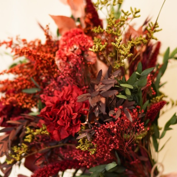 15 tallos con flores de temporada en tonos rojos y verdes o ramo Vintage de flores preservadas de 10 tallos. Incluye envío.