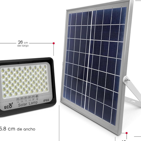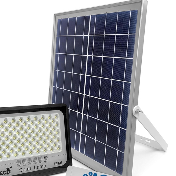 Foco led de exterior con panel solar y mando control, 10W, 6500K, IP66, 400Lm