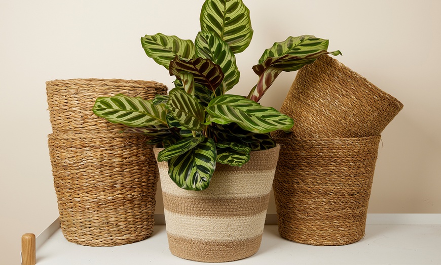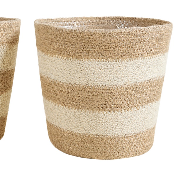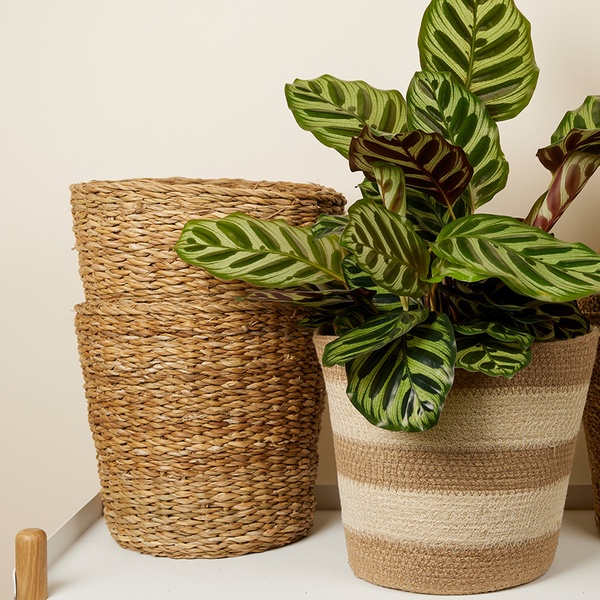 - Disponible en opciones de hierba marina, ratán o yute, ideales para realzar la belleza de las plantas