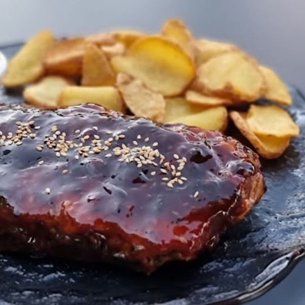 - Costillar de cerdo a baja temperatura con salsa barbacoa y miel por persona