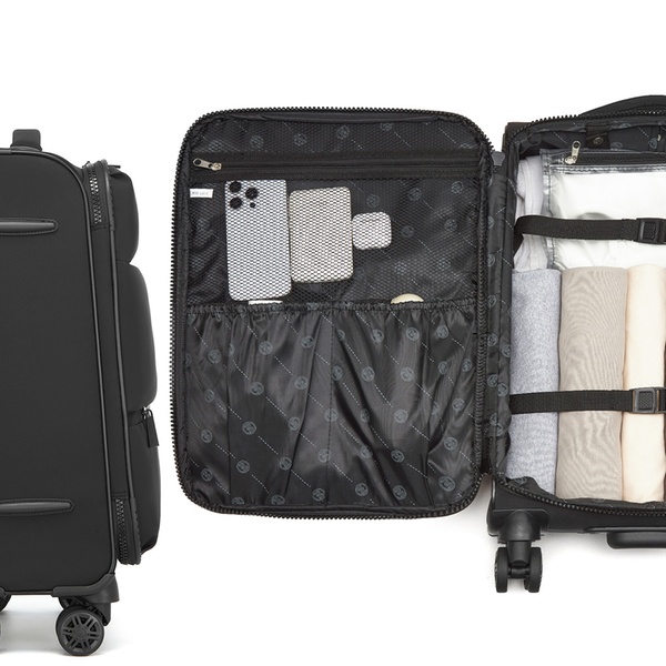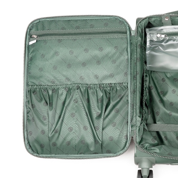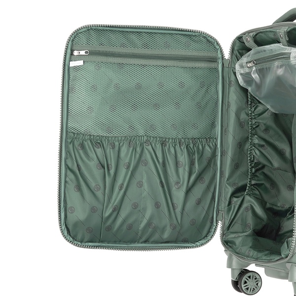 - Compartimento izquierdo con bolsillo de malla y bolsillos elásticos