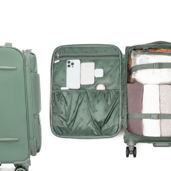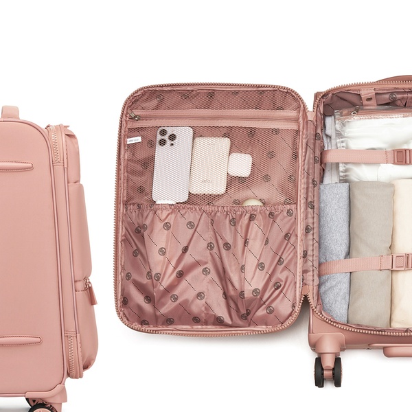Diseñada con un mango telescópico ajustable y ruedas giratorias silenciosas, esta maleta facilita cada viaje con comodidad y estilo