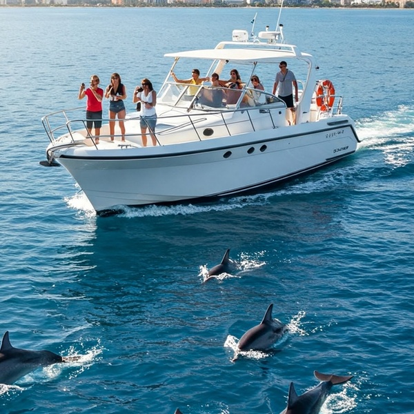 - Paseo en barco con avistamiento de delfines y bebida durante dos horas