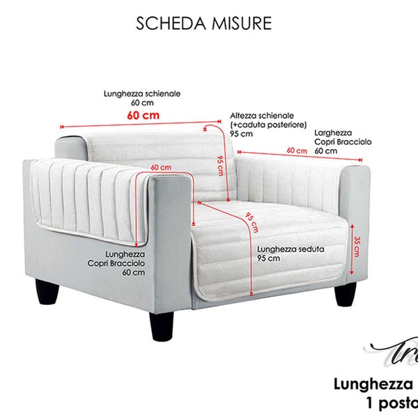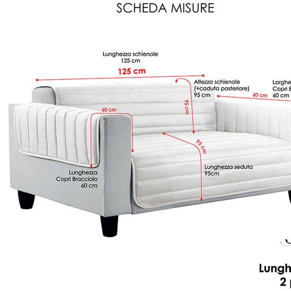 2 plazas: 125 cm de asiento + cubierta lateral del apoyabrazos