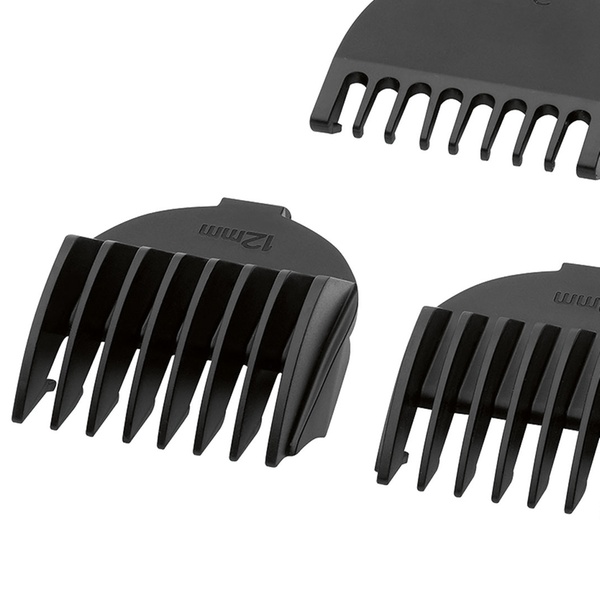 - 1 accesorio para cortar el pelo (ancho 39 mm) con 4 peines (3, 6, 9, 12 mm)