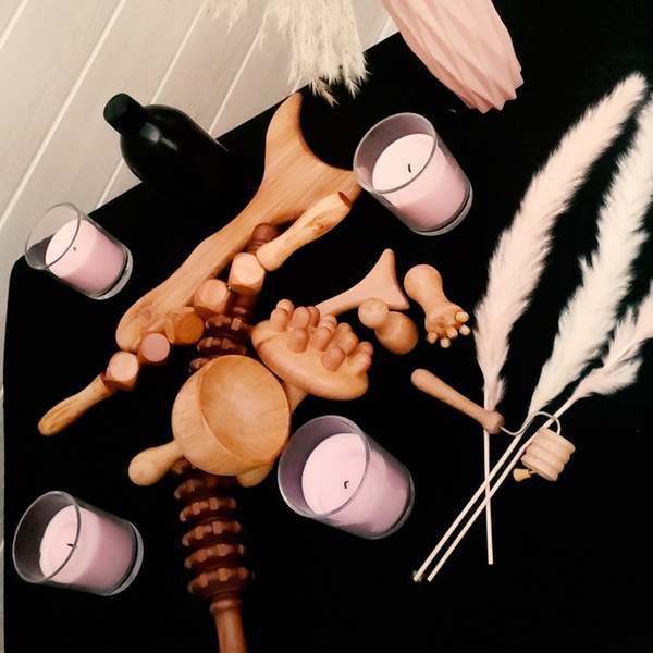 Explora los beneficios naturales del masaje con instrumentos de madera combinados con aceites esenciales