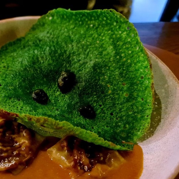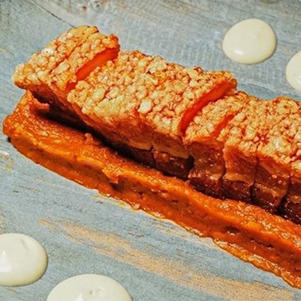 - Tacos de manitas de cerdo al estilo Thai con pico de gallo de piña y mayonesa de membrillo