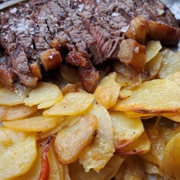 - Entraña a la brasa con chimichurri y patatas rústicas