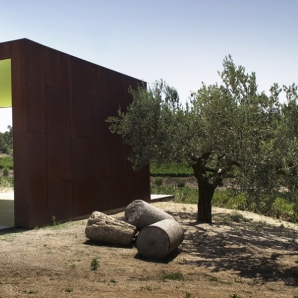 El edificio crece sobre la edificación previa de Mas Rodó, una "casa pairal" que data del siglo XIII. La bodega quedó finalista en la 2.ª edición de los premios "Vivir con Madera", enmarcados en el Consejo Español de Promoción de la Madera y Arquin Fad.