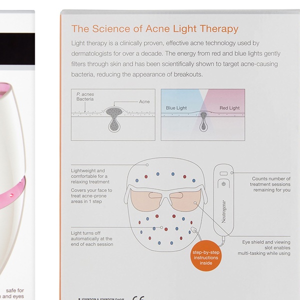 Esta máscara ha sido diseñada para mejorar la apariencia de la piel, ya que ayuda a combatir el acné empleando luz LED roja y azul