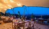 • Menú de cena bajo las estrellas para 4 personas con 4 entrantes, 4 principales, 4 postres y 2 botellas de vino o 4 bebidas.