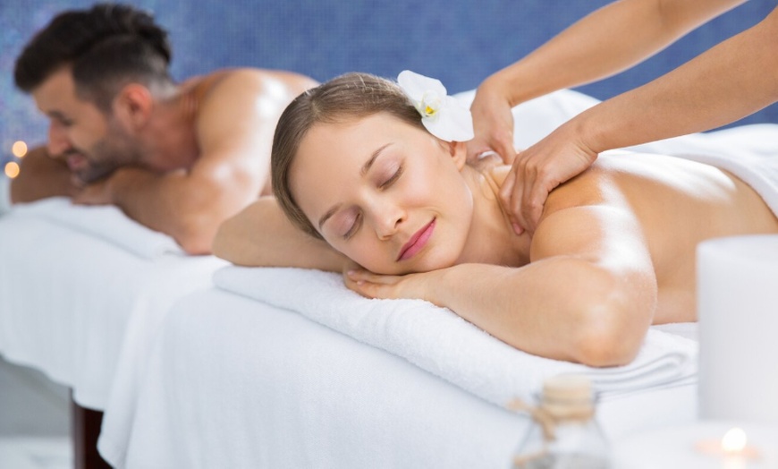 Disfruta de un masaje en pareja en un entorno romántico y exclusivo mientras saboreas una copa de cava acompañada de chocolate