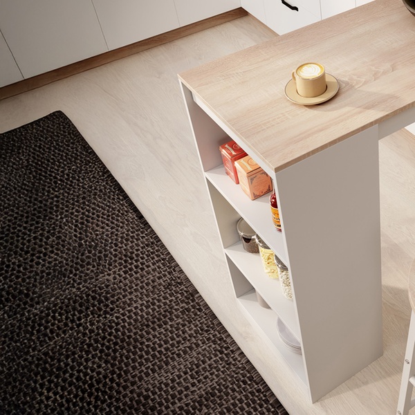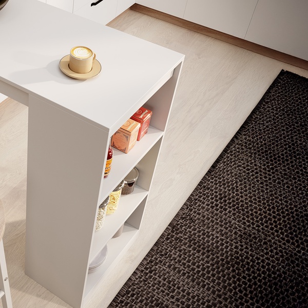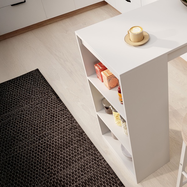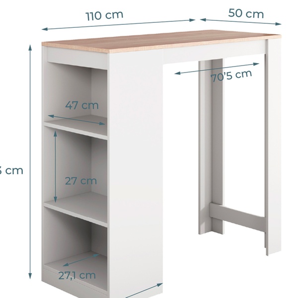 Con un diseño moderno y líneas limpias, esta mesa es el complemento perfecto para tu cocina o salón. ¡Aprovecha al máximo cualquier rincón y crea un espacio acogedor para tus desayunos, comidas o como un rincón de bar para tus reuniones!