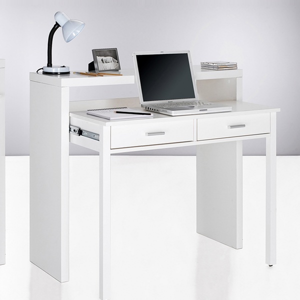 En un par de movimientos se transforma en consola, esta mesa incluye dos cajones e instrucciones de montaje