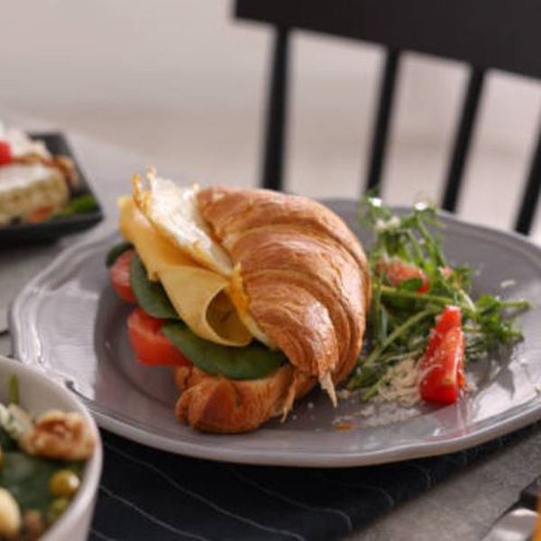Croissant completo: tomate, queso vegano y mortadela vegana