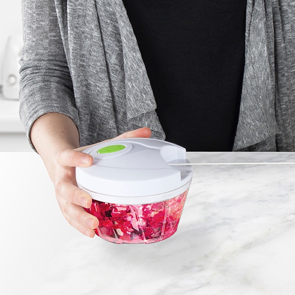 - Con 1 simple tirón sus cuchillas giran y trocean todos los alimentos