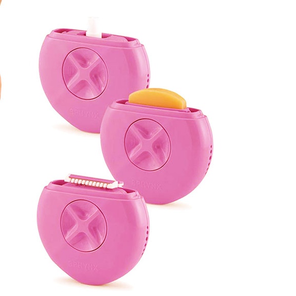 - Tiene 3 puntas diferentes: un spray de agua recargable para humedecer la zona a tratar, un tratamiento para hidratar la piel antes o después del afeitado y una punta de afeitar