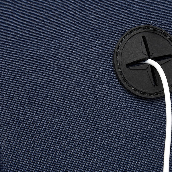 - Abertura discreta lateral en forma de cruz para pasar auriculares o cables de carga